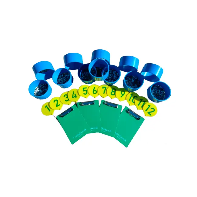 Vi har køller i forskellige længder, kugler i forskellige vægtklasser, huller, låg, skilte, skriveunderlag og vandfast papir til udendørs spil, samt kugler og huller til indendørs spil. Ydermere er der kugleopsamlere, tasker og diverse løsdele, så vi har det meste.